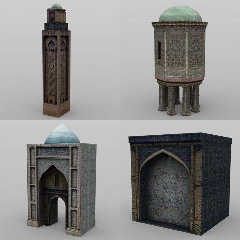 Create your own Middle East style images and animations with this set of models. Mix and match buildings, trees, accessories and more! Be sure look for all the products in this set of themed models.