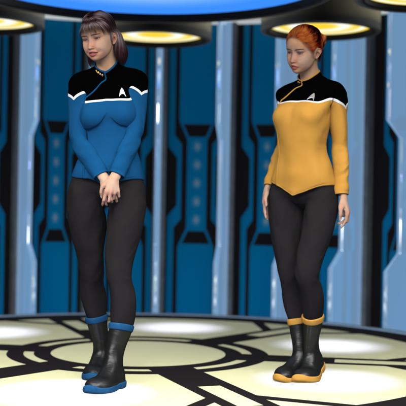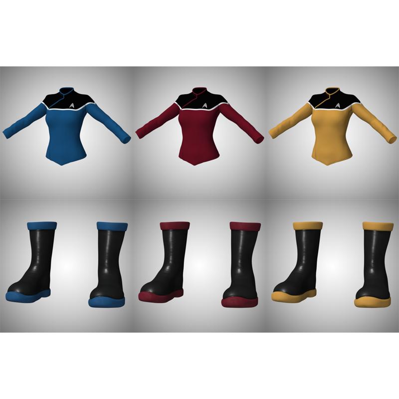 .: Material Files :. • Three color schemes are included for the Boots: - Department - Command - Department - Operations - Department - Science • Three color schemes are included for the shirt: - Department - Command - Department - Operations - Department - Science • Three pip ranks are included for the shirt: - Captain - Commander + 1 Elote - Commander - CPO - Ensign + 1 Elote - Ensign + 2 Elote - Ensign + 3 Elote - Ensign - Lieutenant - Lt. + 1 Elote - Lt. + 2 Elote - Lt. Cmdr - Lt. Jr. Grade