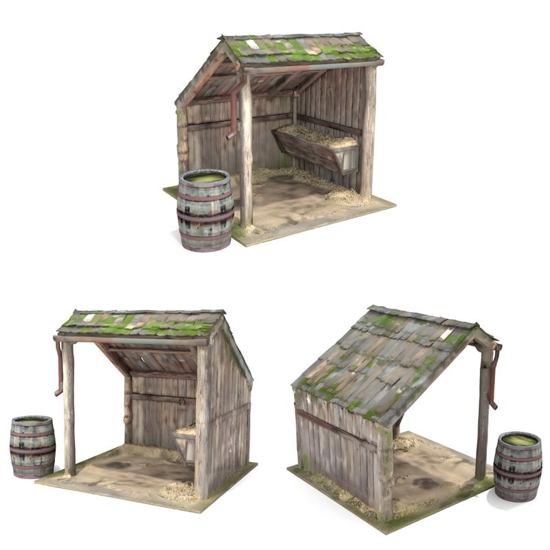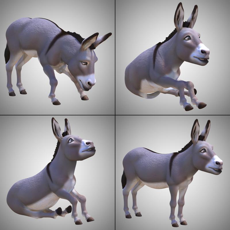 Includes 7 animated poses: either use these to create an animation or select individual frames for your image. A livestock barn and rain barrel are also included for you burro to sleep and stay out of the elements.