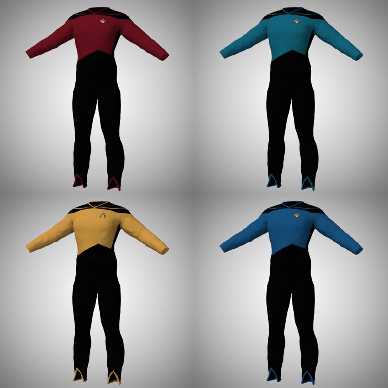 .: Material Collection Files :. • Includes 4 color schemes for the both the Jumpsuit and Skant: - Command (Red) - Medical (Blue) - Operations (Gold) - Science (Blue) • Rank Pips: hide and show the pips according to rank: - Captain - Commander - CPO - Ensign - Lieutenant - Lieutenant Commander - Lieutenant Jr Grade
