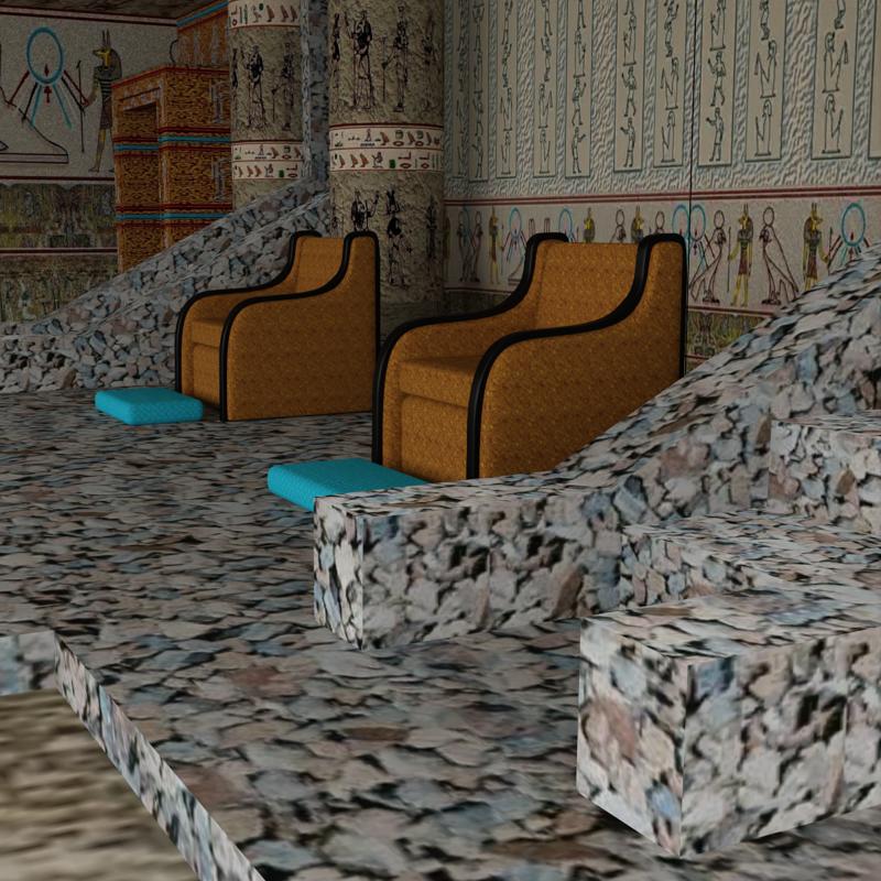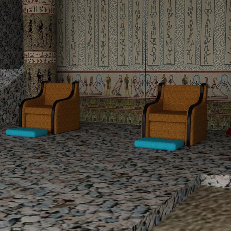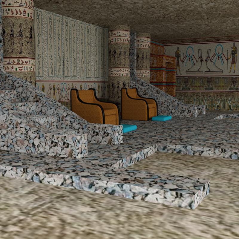 An Egyptian palace interior... once a vibrant throne room for generations of pharaohs, but now a darkened and possibly haunted interior.