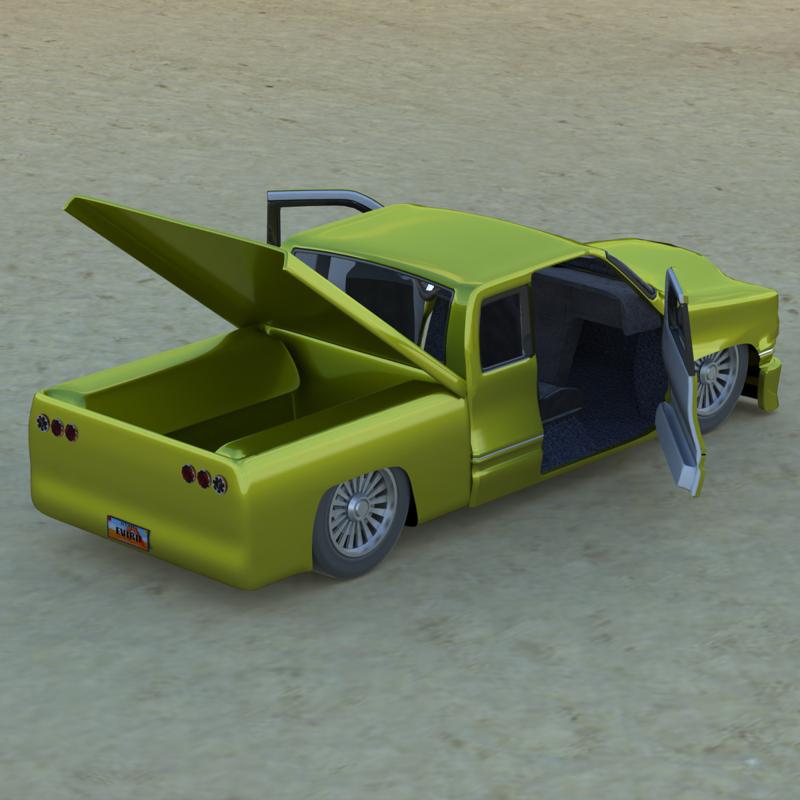.: Product Features :. • Poser figure: obj, cr2/ png, with 96,668 polygons. • Left and right doors can open and close, with Pose Control dials on the Body. • All four wheels can rotate around, with a Pose Control dial on the Body. • Front wheels are steerable. • Steering wheel is turnable and a Pose Control dial on the Body affects both the front wheels and steering wheel. • The rear bed cover can open and close, with a Pose Control dial on the Body. • The seats can move front-to back to accommodate different sized Poser figures. • The front hood does not open.